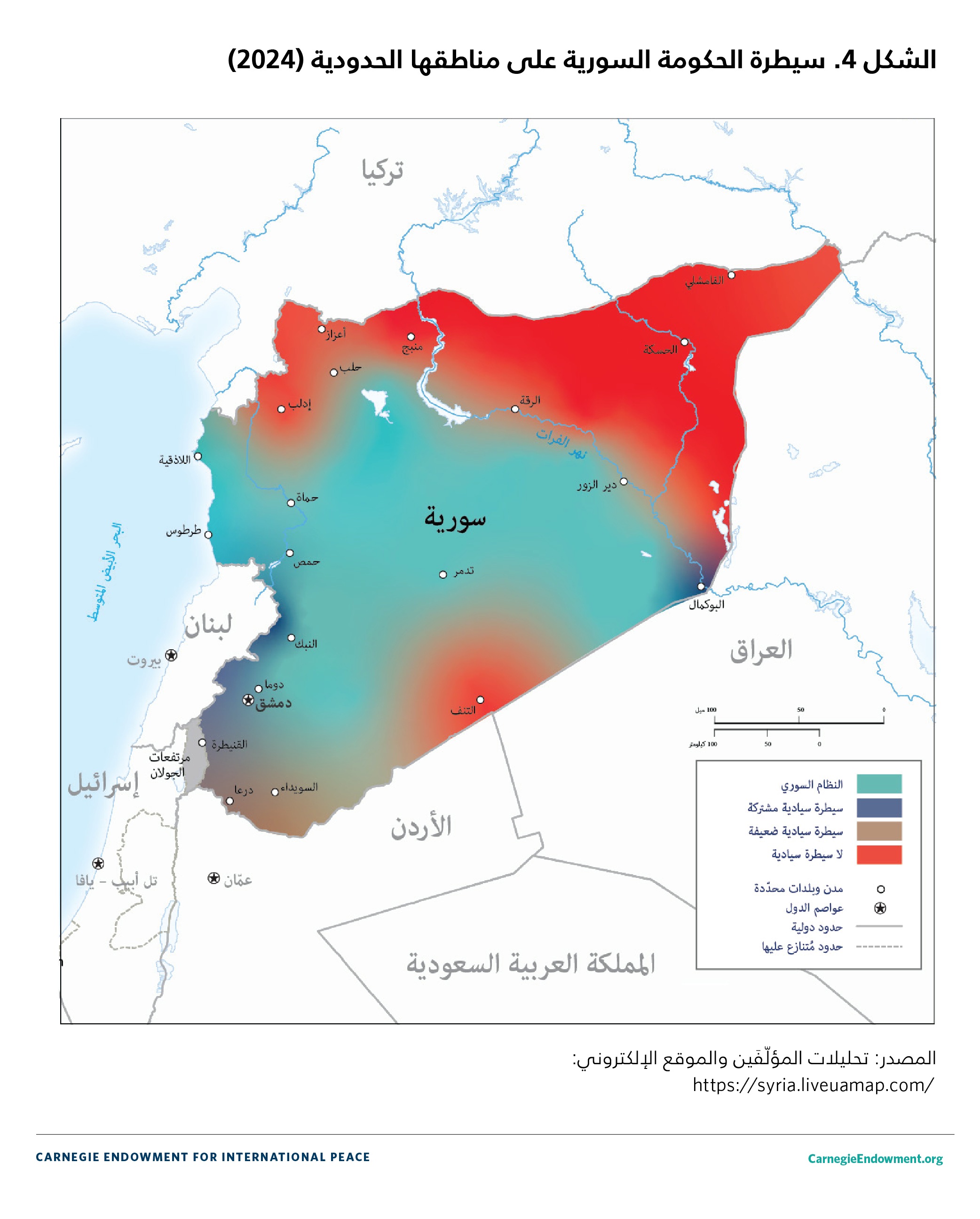 خسرت السلطات المركزية السورية سيادتها على المناطق الحدودية، التي باتت موضع تنازع بين قوى محلية وإقليمية ودولية. ونظرًا إلى أن هذا الواقع لن يتغيّر قريبًا، من المُستبعَد التوصّل إلى حلٍّ للأزمة السورية، ولا سيما أن جميع الأطراف المنخرطة في الصراع، بما في ذلك القوى الخارجية، قد تواجه مخاطر إذا شهدت أجزاء مختلفة من سورية اضطرابات داخلية. وبما أن ما من طرفٍ قادرٍ على تحقيق نصرٍ مطلق، من الضروري بلورة إطار وطني للتوصّل إلى حلٍّ شامل للصراع السوري.