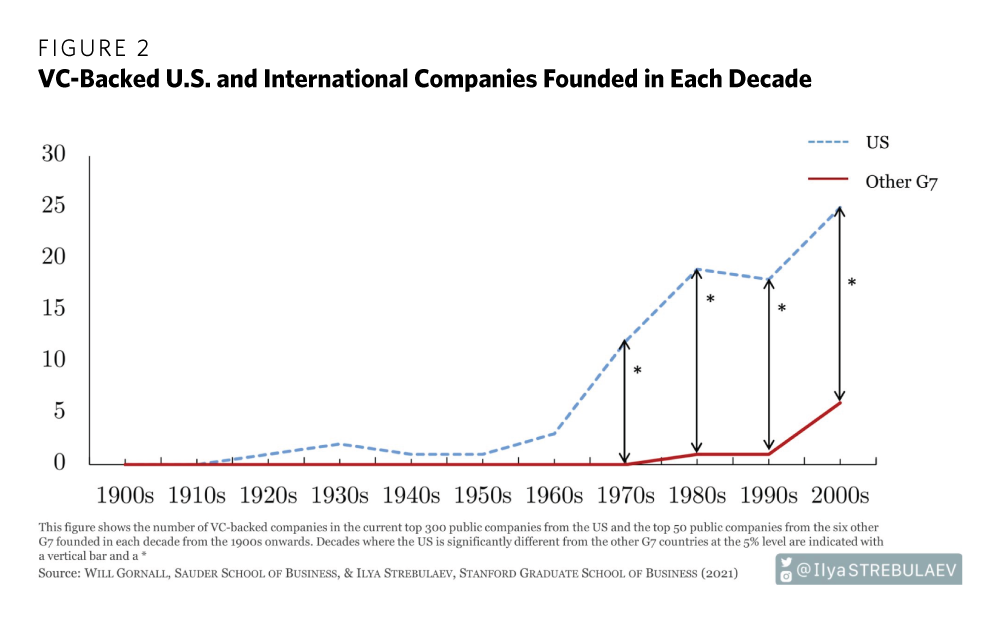 Venture capital is overwhelmingly concentrated in California (see table 2), and the top VC firms continue to reside in Silicon Valley. The gap between VC-backed firms in the United States and in other G7 countries is stark (see figure 2).